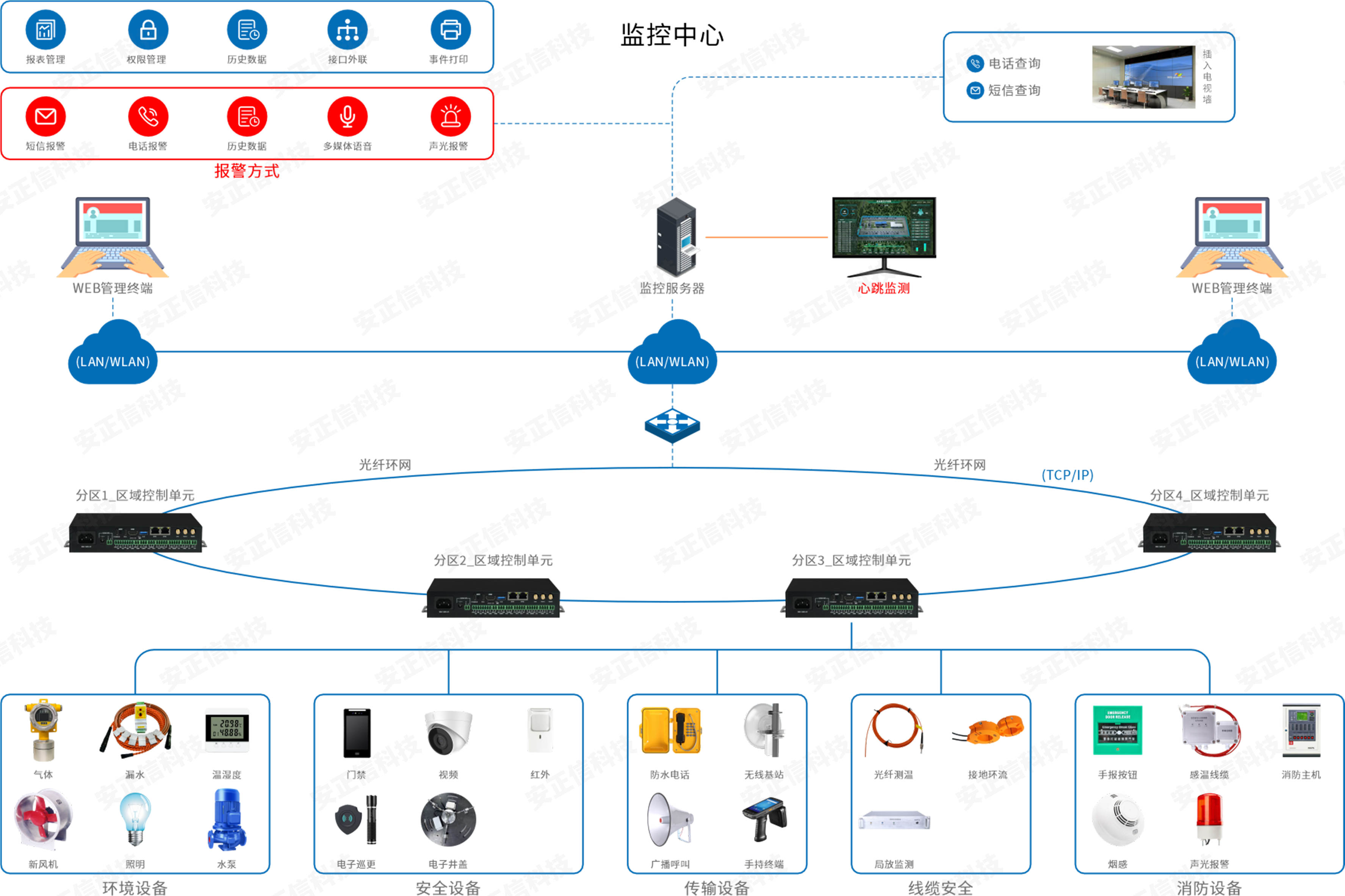 各子系統通過光纖環網傳輸數據,提高數據交換與系統聯動效率。系統支持遠程控制,本地離線運行,即使通訊中斷也不會影響本地聯動控制;